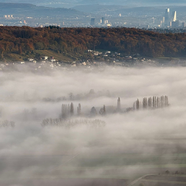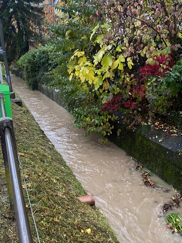 Der September war mehr als doppelt so nass wie nach der Norm von 1991 bis 2020. Wir massen auf unserer Station 155 statt 72 Liter pro Quadratmeter, also 215 Prozent. Am 4. und 8. September waren bereits Starkregen niedergegangen. Am 21. fielen sodann mit 52 Litern rund ein Drittel der ganzen Monatssumme oder fast drei Viertel der üblichen Septemberniederschläge. Mit dieser Kaltfront war ein Temperatursturz von 14° verbunden, ausgelöst von einem Höhentief über Frankreich. Viel Nieselregen folgte. Im November waren es schliesslich 109 statt der üblichen 69 Liter. Auch hier trugen zwei Starkregen wesentlich zum Ergebnis bei, am 1. waren es über 29 Liter. Nur etwa zehn Prozent zu nass war der Oktober. Die Regenmenge des ganzen Herbstes lag um 59 Prozent über der Norm. Der Klimawandel lässt grüssen!